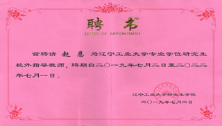 我公司趙恩、翁鐵生被遼寧工業(yè)大學(xué)研究生學(xué)院聘為遼寧工業(yè)大學(xué)專業(yè)學(xué)位研究生校外指導(dǎo)教師。